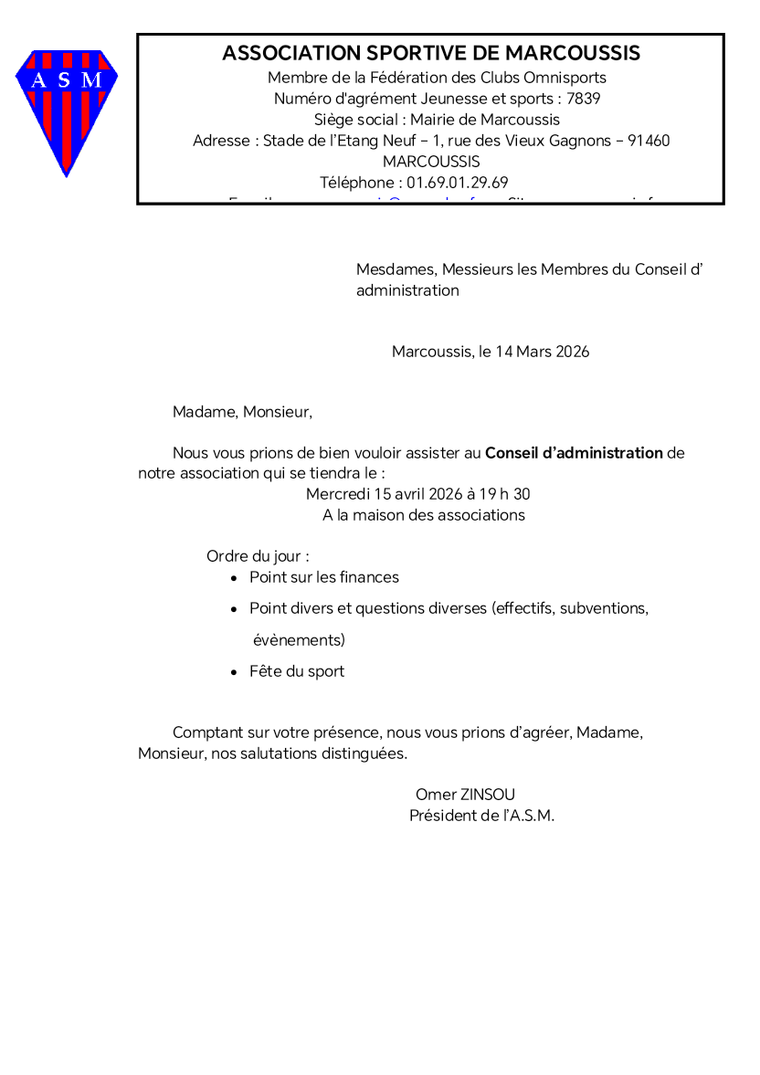 L’assemblée générale de l’AS Marcoussis s’est tenue le 17 Décembre 2025 à Marcoussis.